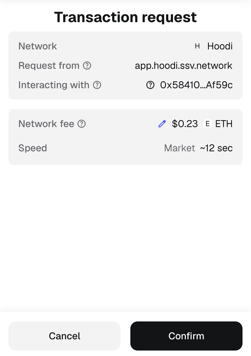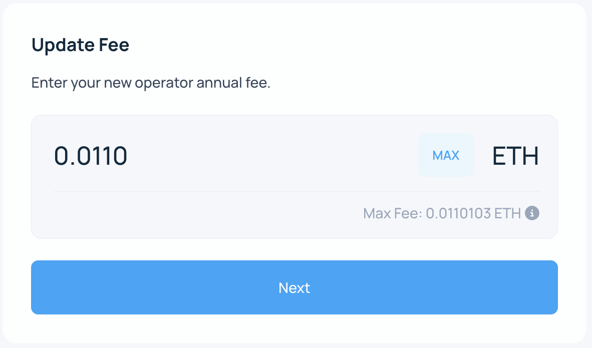 When you click Update Fee, the Web App creates a smart contract transaction. Open your wallet if needed and confirm the transaction.
