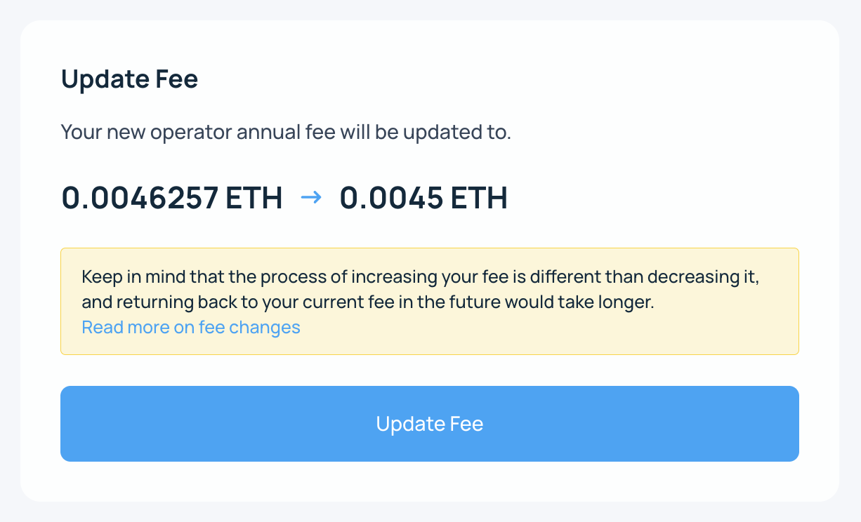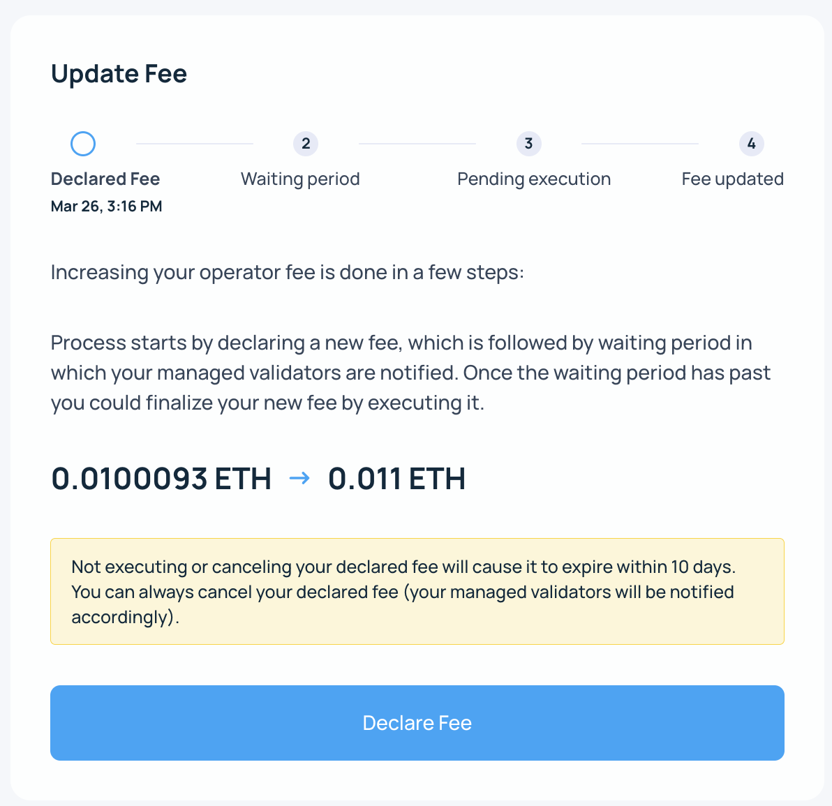 Then a waiting period gives all validators using this Operator time to learn about the fee update.