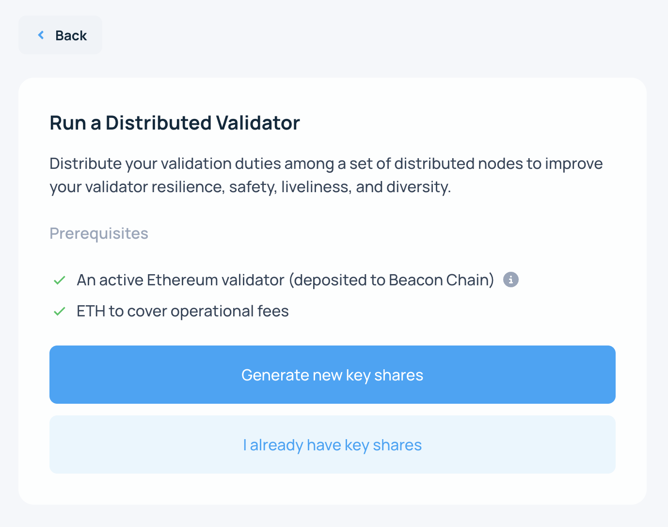 - Distributed key generation - if you want the validator key to be generated as distributed shares without ever creating the full validator private key in one place.